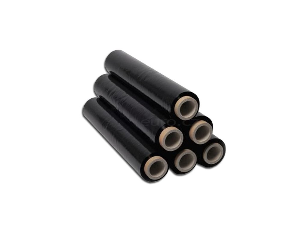 Průtažná černá fólie pro ruční ovíjení zboží na paletách nebo ovíjení krabic. Fólie je vyrobena z primárních LDPE materiálů a neobsahuje regranuláty degradující její vlastnosti. Svými mechanickými vlastnostmi splňuje nejvyšší nároky na pevný obal, neobsahuje a neuvolňuje zdraví škodlivé látky.