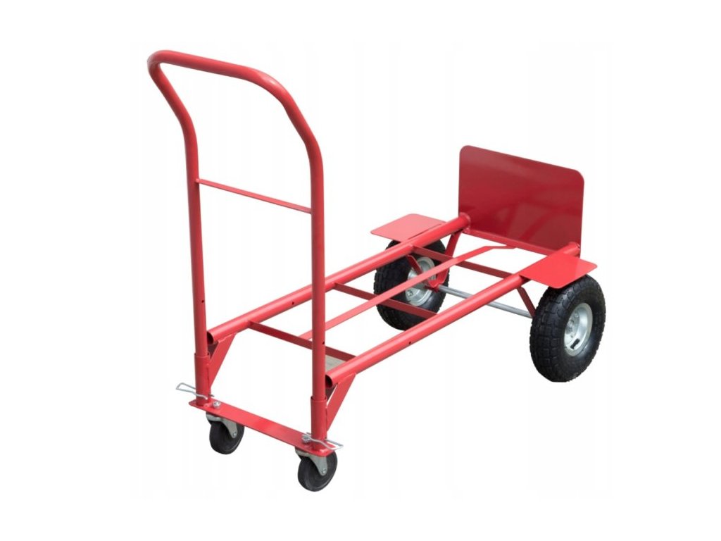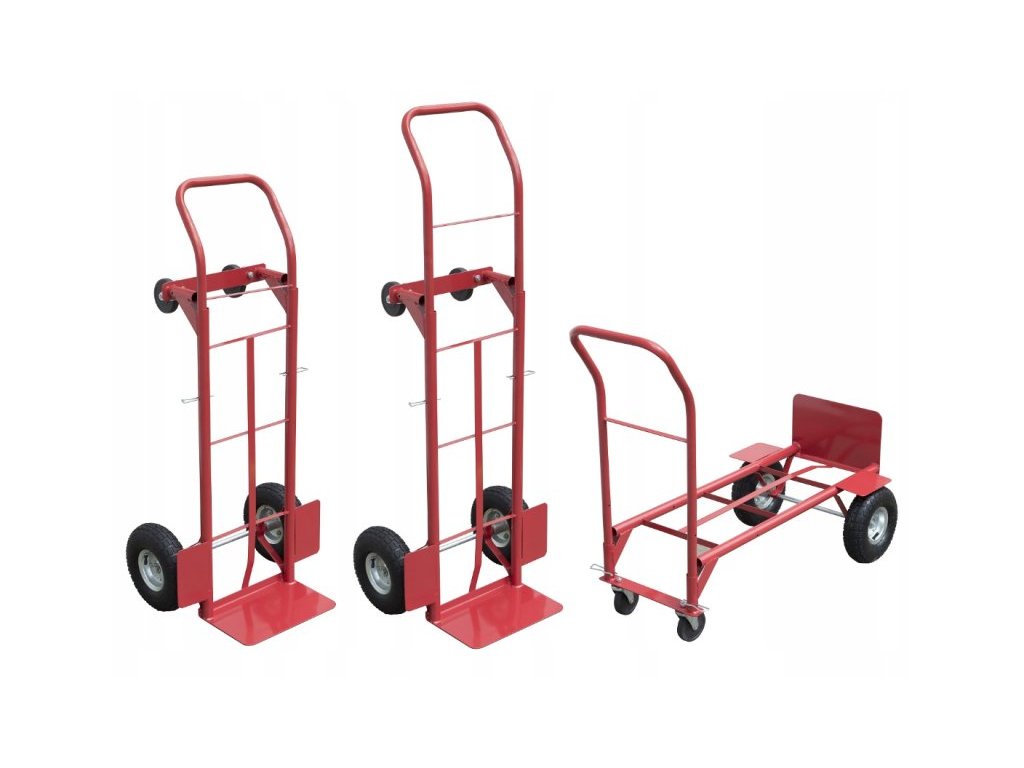Rudl HT4014 multifunkční 250kgZnačkový multifunkční rudl s maximální nosností 250 kg a s nafukovacími koly je univerzální vozík, který vám bude nápomocný při přepravě materiálu po různém povrchu, např. po chodníku, trávě, nezpevněných plochách, skladech, výrobních halách, atd. Rudl je možné přestavět a získat tím rudl s dlouhou rukojetí, který slouží pro přepravu rozměrnějších nákladů a usnadní vám tak každodenní manipulaci s materiálem. Jeho koupí získáte dva rudly v jednom. Pokud máte malé prostory a nechcete si pořizovat velký rudl, ale zároveň potřebujete čas od času přemísťovat i rozměrnější věci, je pro vás tento multifunkční Rudl správnou volbou. Rudly se vyznačují vysokou kvalitou zpracování a dlouhou životností. Parametry: Maximální nosnost: 250 kg Ložiska: Válečkové Svařovaný rám Váha: 13 kg Rozměry: Rozměr Rudl: 125 x 52 x 50 cm Nákladová plocha rudlu: 35 x 25 cm Šířka (včetně kol): 52 cm Rozměr Vozík: 112,5 x 110 x 52 cm Nákladová plocha vozíku: 94 x 50 cm Šířka (včetně kol): 52 cm Rozměr velkého kola: 25 x 9 cm Rozměr malého kola: 10 x 2 cmDoplňkové parametry
